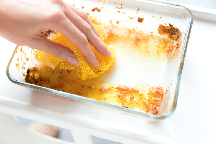 Dùng khăn or giấy để loại bỏ bớt mỡ và thức ăn thừa trước khi cho vào máy rửa