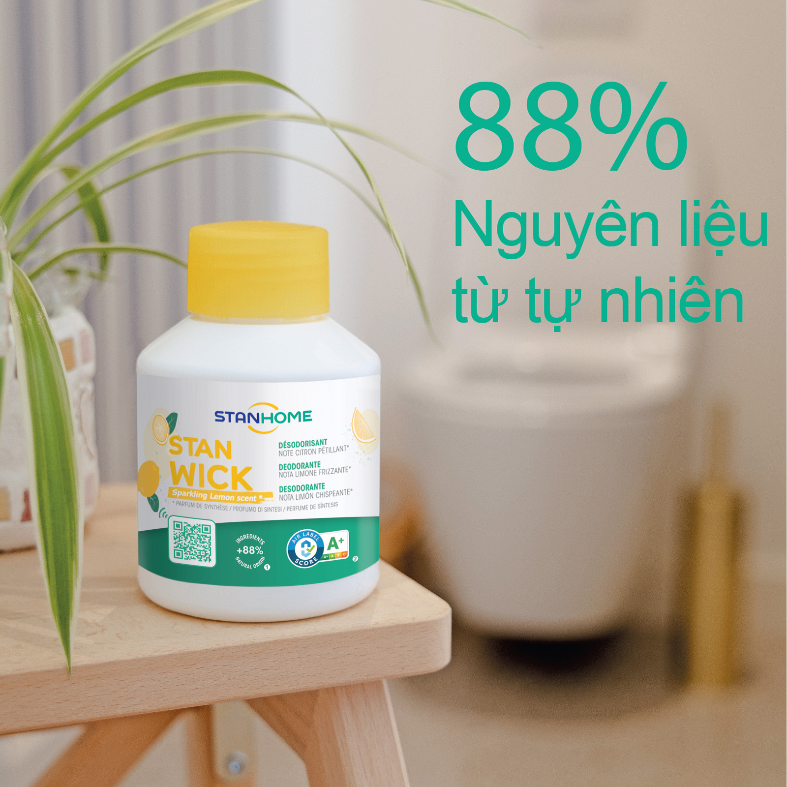 - Công nghệ khử mùi ưu việt loại bỏ mạnh mẽ mùi hôi, mùi khó chịu cho không gian sống. Stan Wick Sparkling Lemon Scent loại bỏ mạnh mẽ mùi chiên rán cũng như mùi khó chịu trong nhà tắm/vệ sinh lên tới 4 tháng.