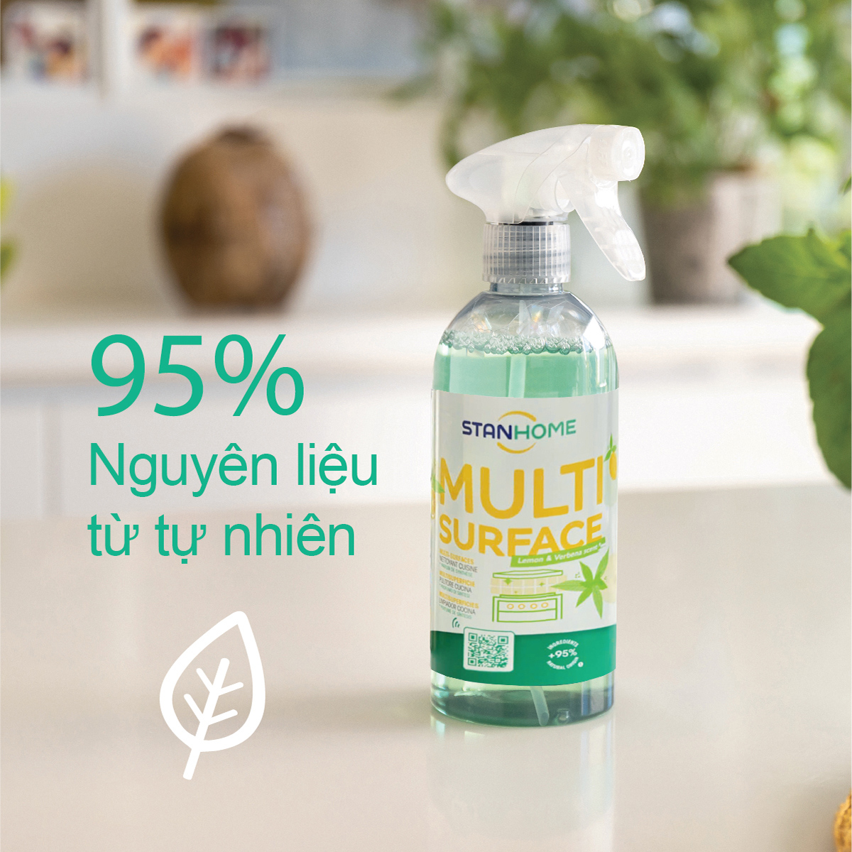 Xịt làm sạch bếp đa năng nguyên liệu từ tự nhiên hương chanh cỏ Stanhome Multi Surface Lemon & Verbena Scent 500ml giúp làm sạch, loại bỏ vết bẩn, dầu mỡ. Với kết cấu dạng gel bám dính lý tưởng trên các bề mặt thẳng đứng. Sử dụng tốt cho mọi bề mặt trong nhà bếp (đồ điện gia dụng, lò vi sóng, tủ lạnh, bàn ăn, khu vực quanh bếp, bồn rửa bát…)